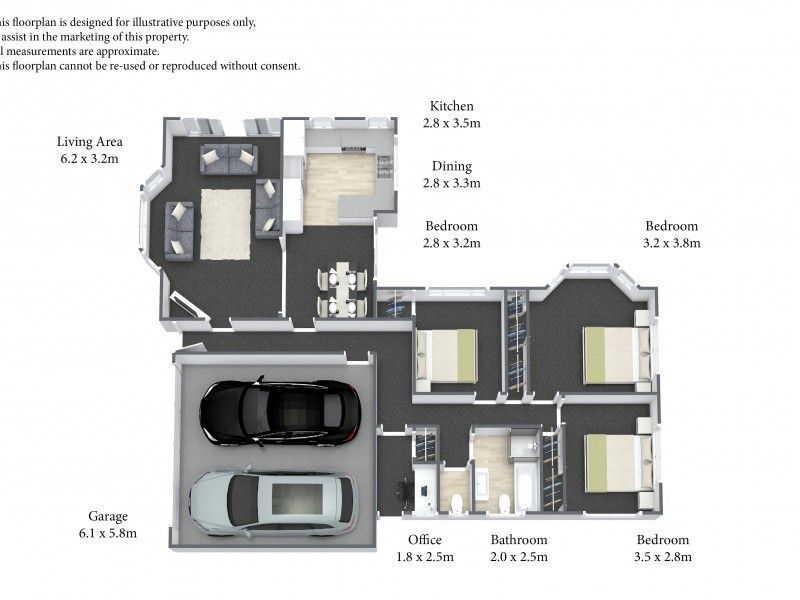This spacious 3 bedroom, 1 bathroom (2 toilets), 1 office house is located at 62