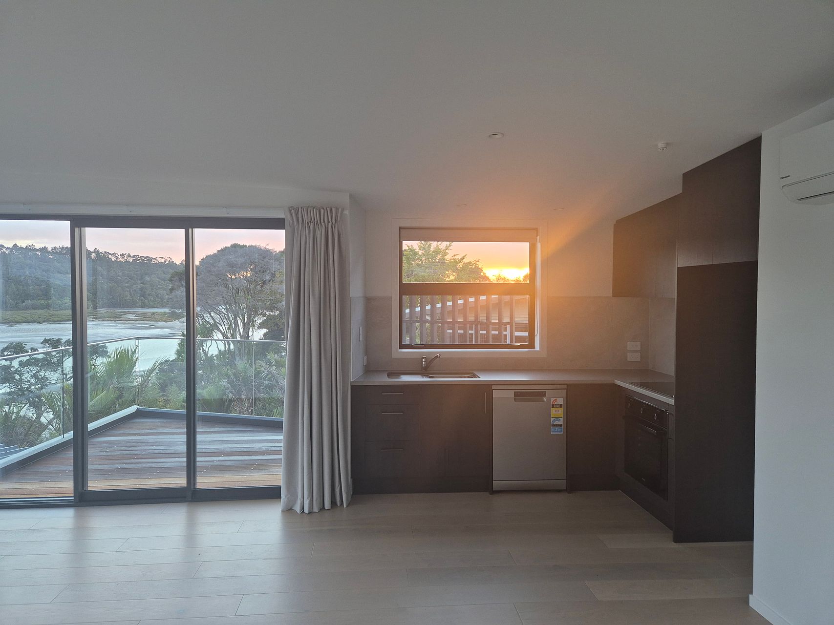 Located in the serene environment of Okura, this new 2-bedroom flat built above a family home below provides modern living and natural beauty. A comfortable and efficient living space, complete with air conditioning and heating. Healthy Homes compliant. The open-plan living area and balcony have expansive views of the estuary, making it an ideal spot for relaxation. Built-in wardrobes provide ample storage. Combined Washer/dryer provided.