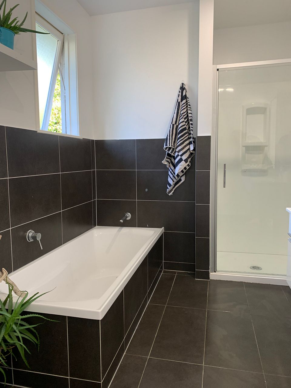 Heat pump, new dish washer and bathroom with shower and separate bath.