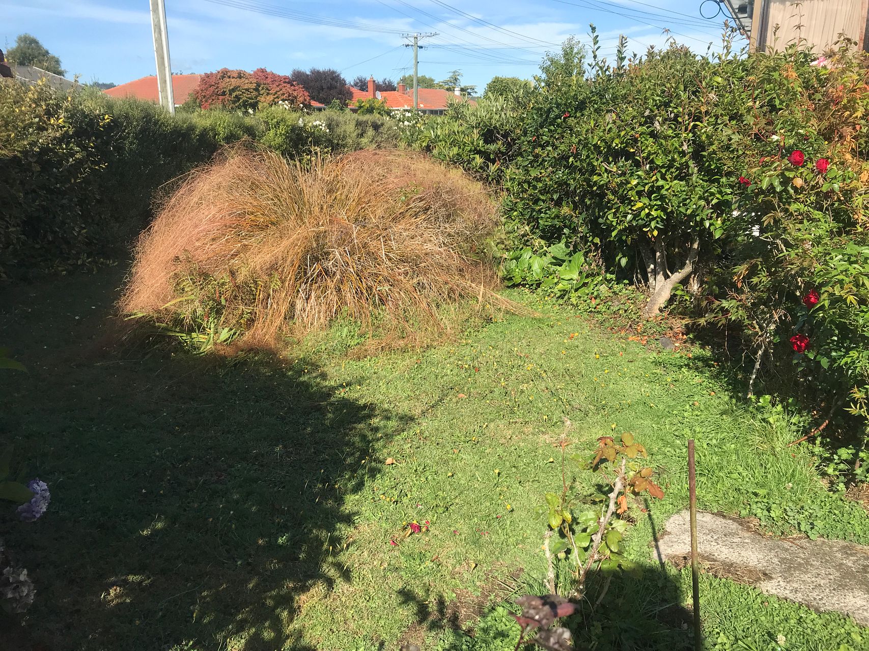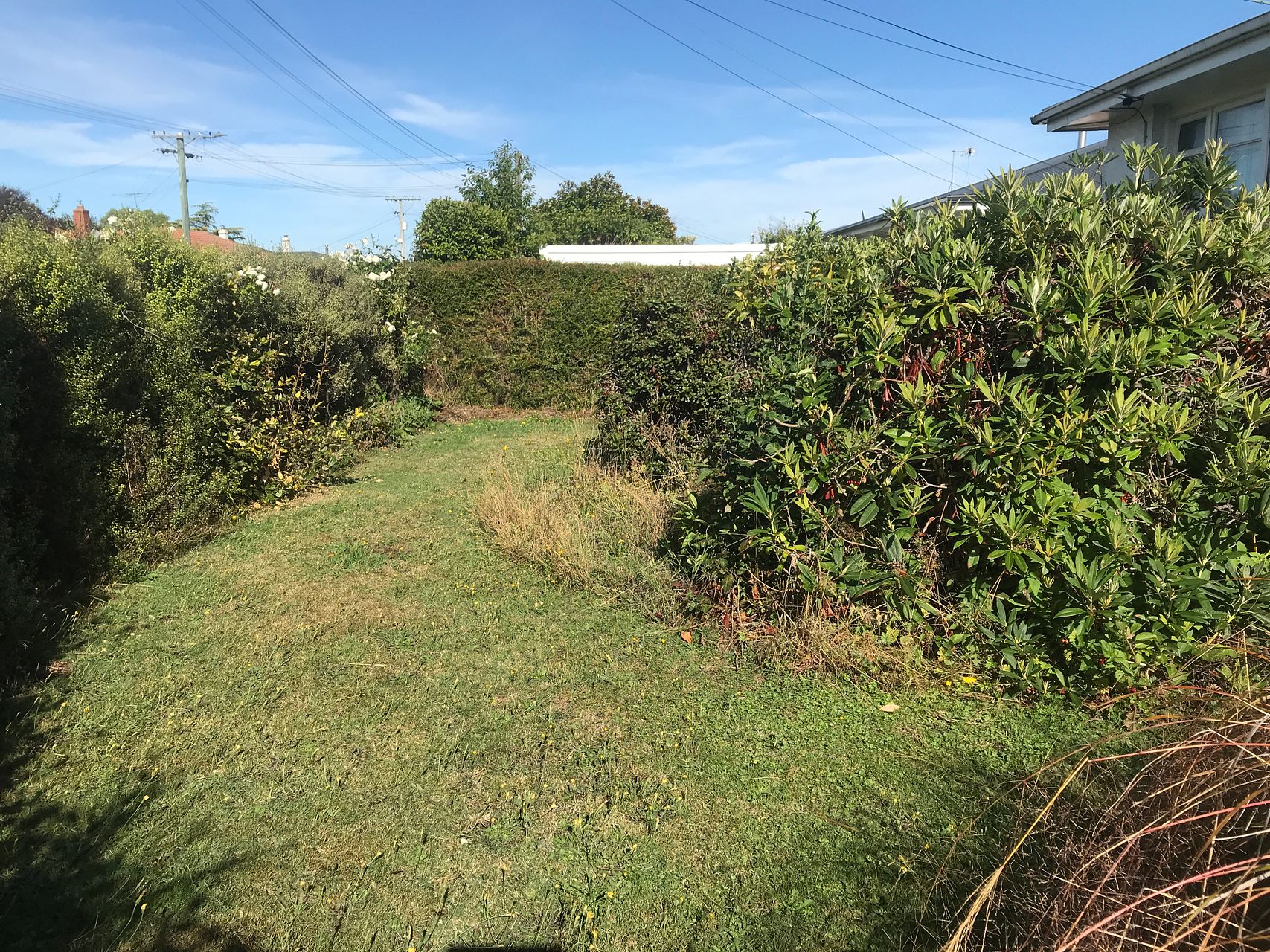 Super sunny, corner street location, with an established mature flat garden with areas of lawn.