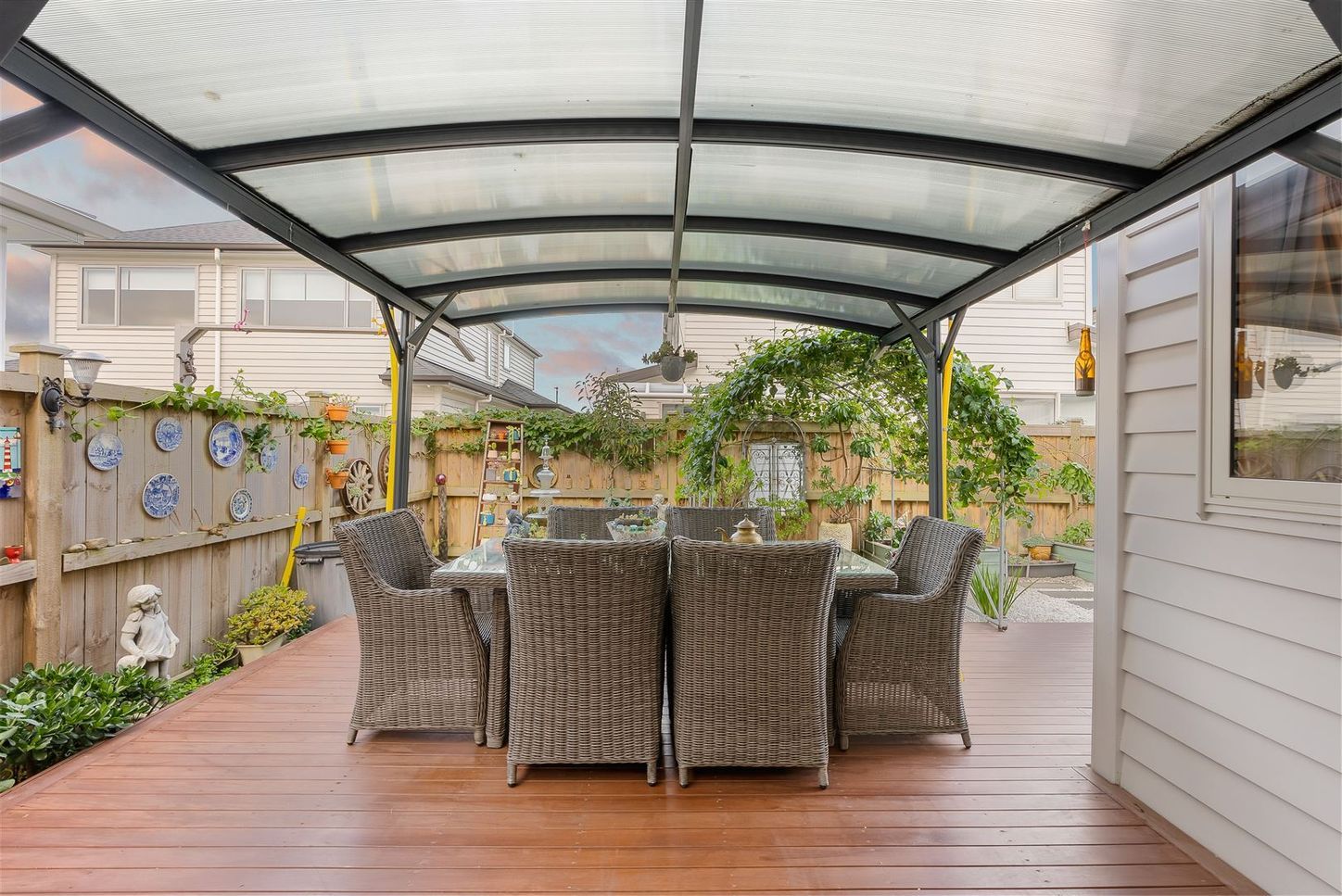 The backyard has a covered deck which is extremely handy for hanging washing, and not having to worry about the rain. A very easy care garden in the front + back with minimal grass to cut.