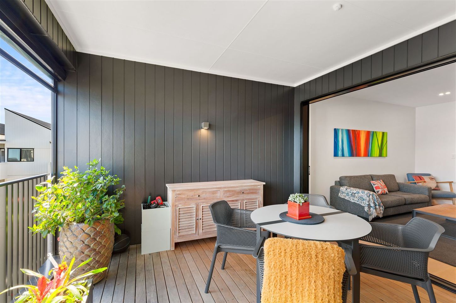 Open plan kitchen, living and dining that flows seamlessly into the outdoor area and sheltered deck, with cafe blinds. Includes fridge/freezer & Front loader washing machine.