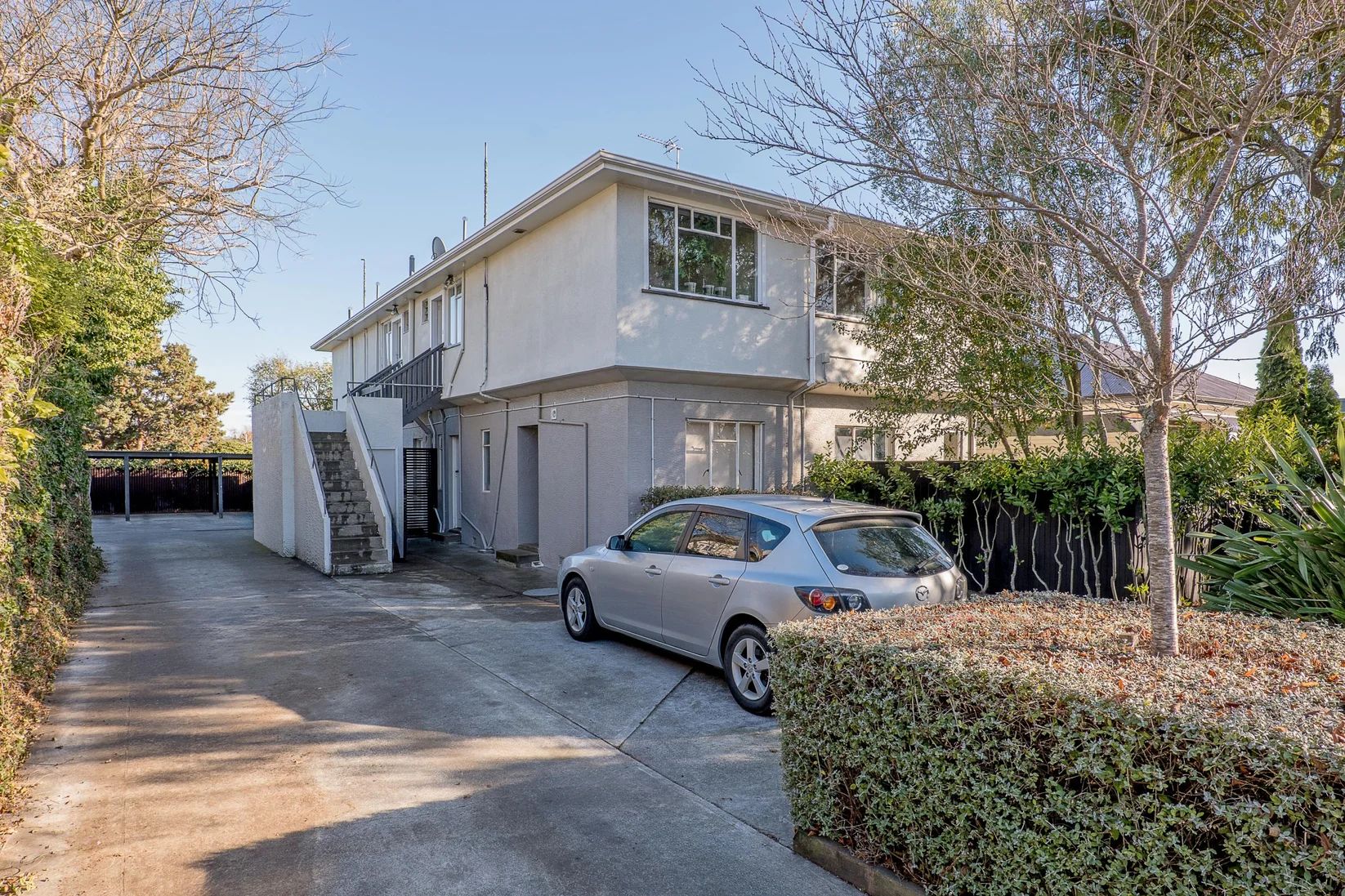 Upstairs in a block of four - north facing windows - modern kitchen. Warm sunny unit with two bedrooms. One carport available. Current tenants ready to move into CHCH. Will be doing a viewing session Sunday for those who register interest. Rent 2 weeks in advance and bond 4 weeks. No suitable for pets.