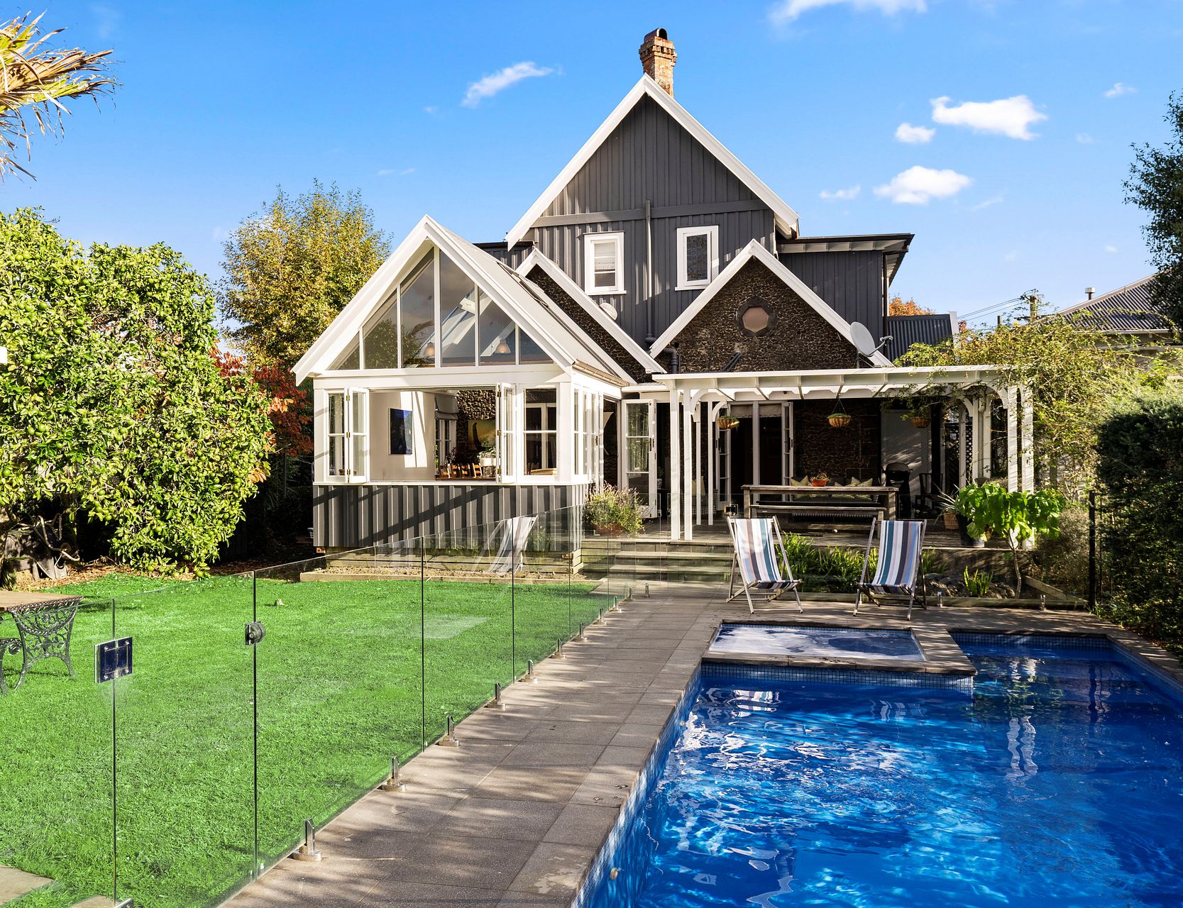 A spa pool and swimming pool situated adjacent to an outdoor deck and bar-b-que area make the home very well suited to entertaining and festive family occasions.