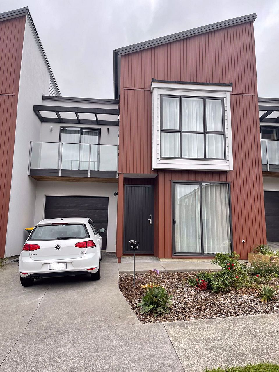 Singal remote access garage; study ( office or double bedroom ); Open plan kitchen; dining area; living room with the sliding door open to outdoor deck; laundry bench in the garage; guest toilet