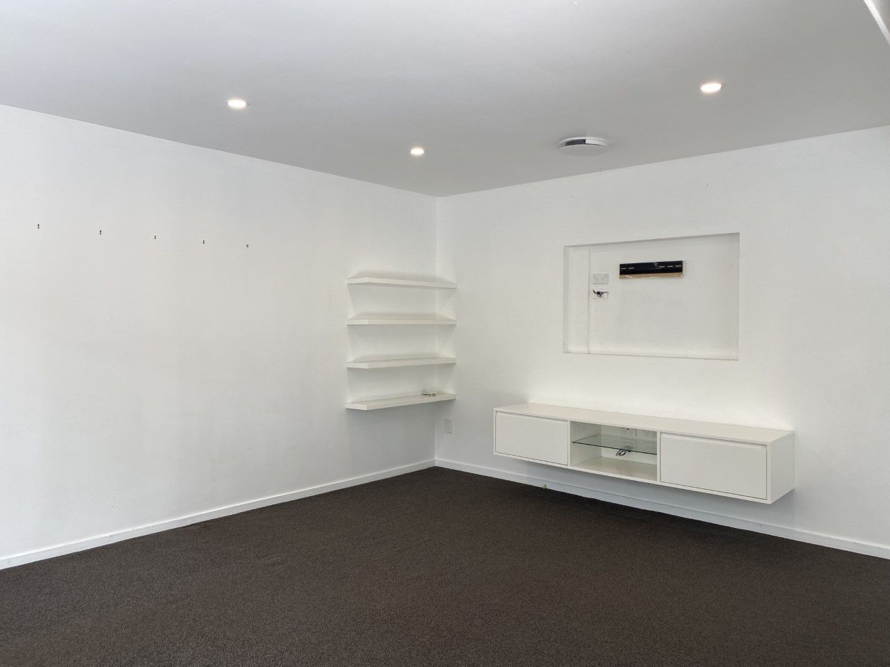 The stunning kitchen is open plan with the dining area and boasts plenty of cupboard space, custom made bench tops, tiled splashback and dishwasher. The large living room features a recessed TV space, in-built floating cabinetry and shelves, a heatpump and effortless indoor/outdoor flow to the huge entertainer's deck that steps down to both the front and back lawn.