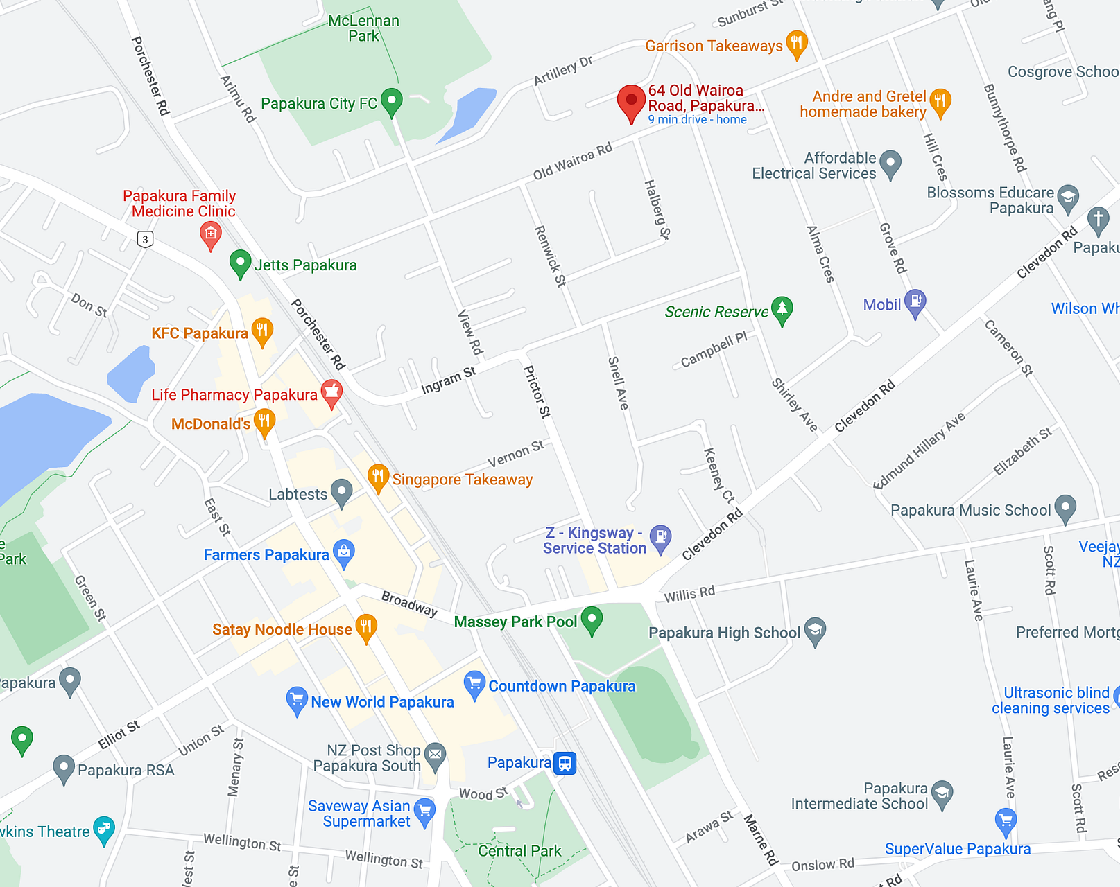 4 minutes drive to Papakura train station.