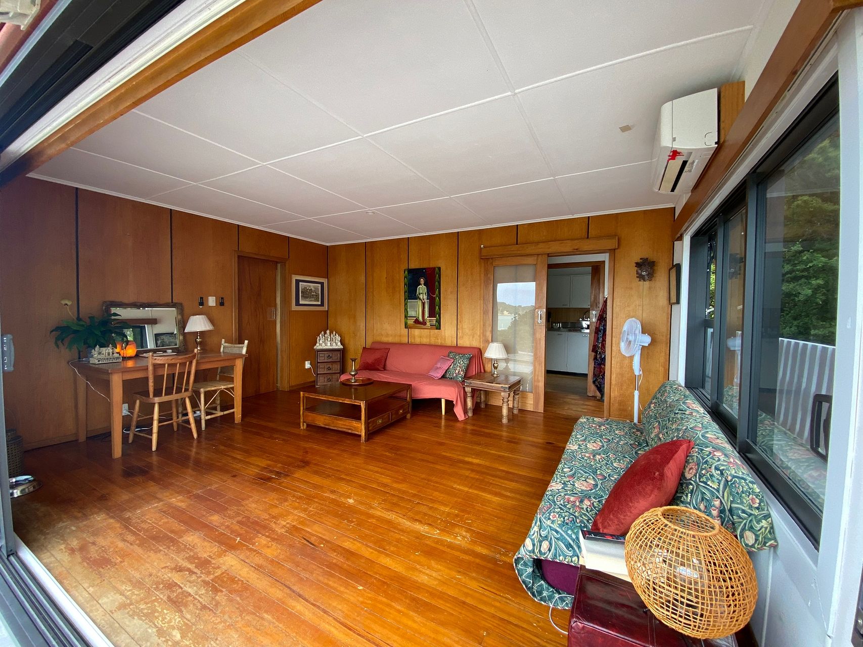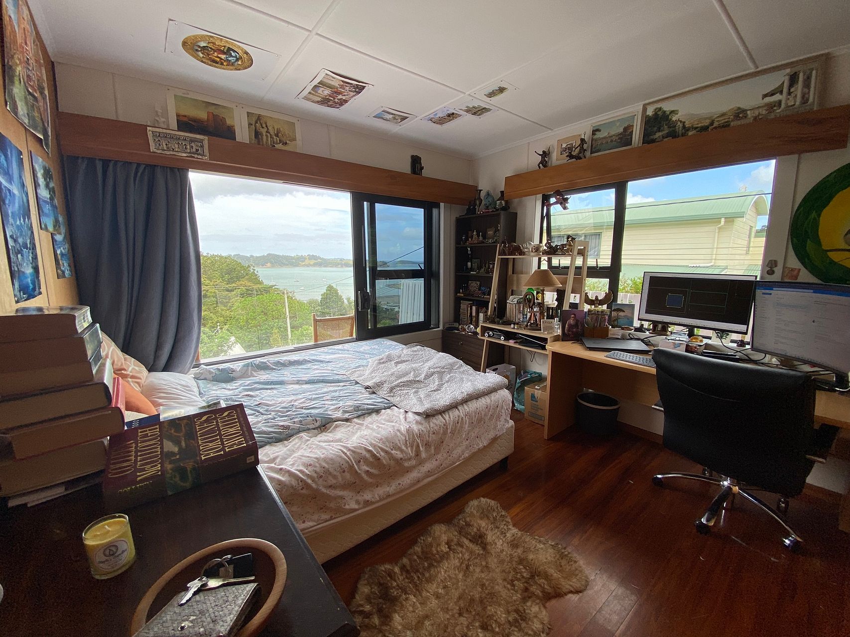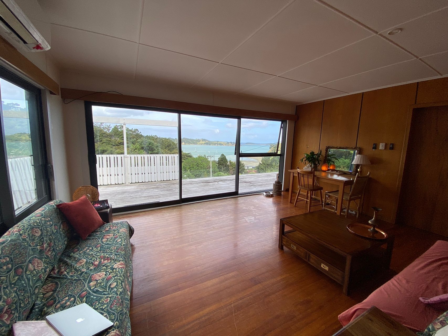 This two bedroom/one bathroom house has stunning views across the ocean from the livingroom and bedroom. The house is tidy and the community is quiet and well to do.