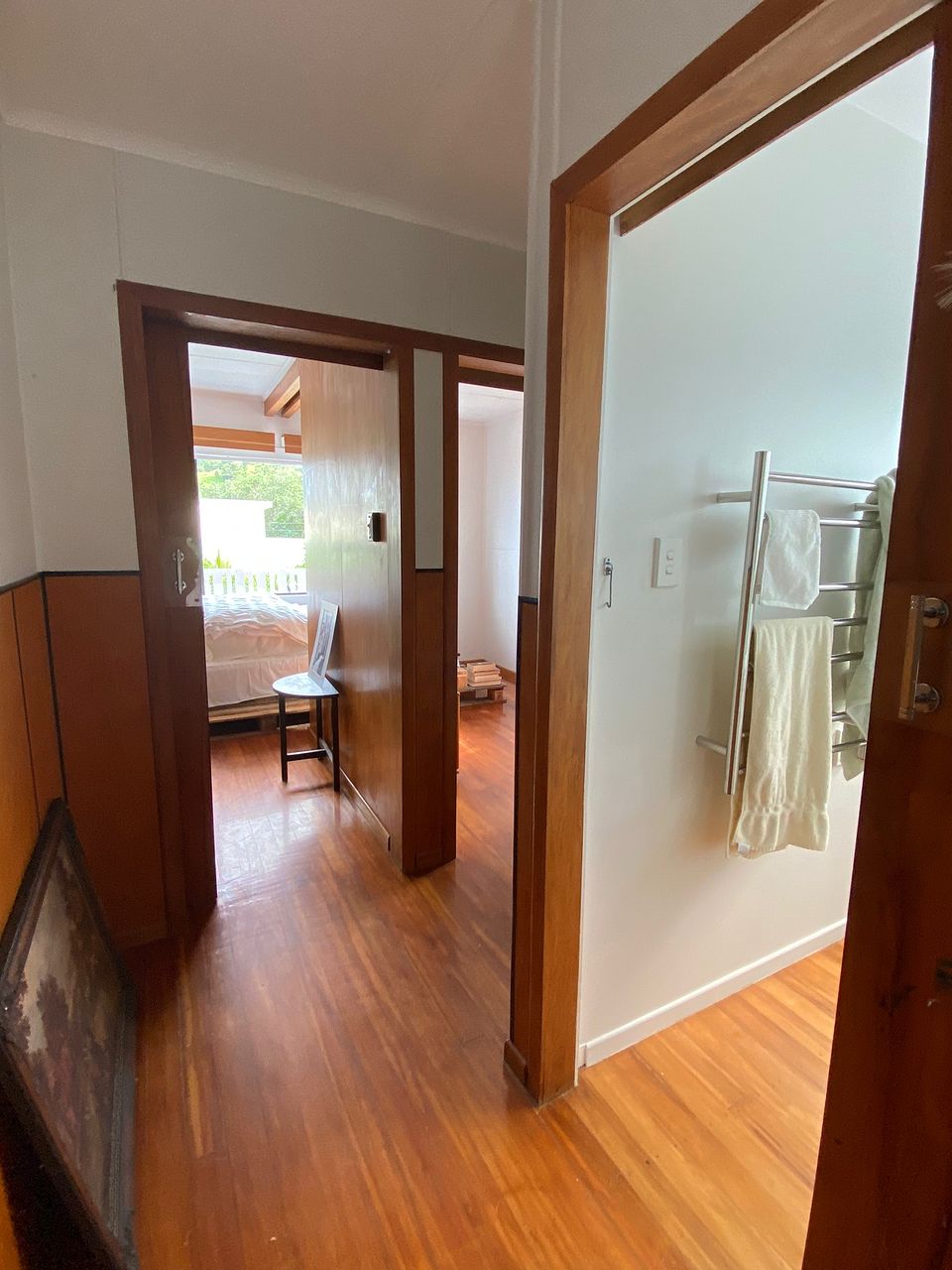 The house is raised over a good size garden to take full advantage of the wonderful location. Enjoy lots of sun, and sunrises from the large deck, living room and master bedroom. The beach is a 5min walk away and is perfect for kayaking and swimming.