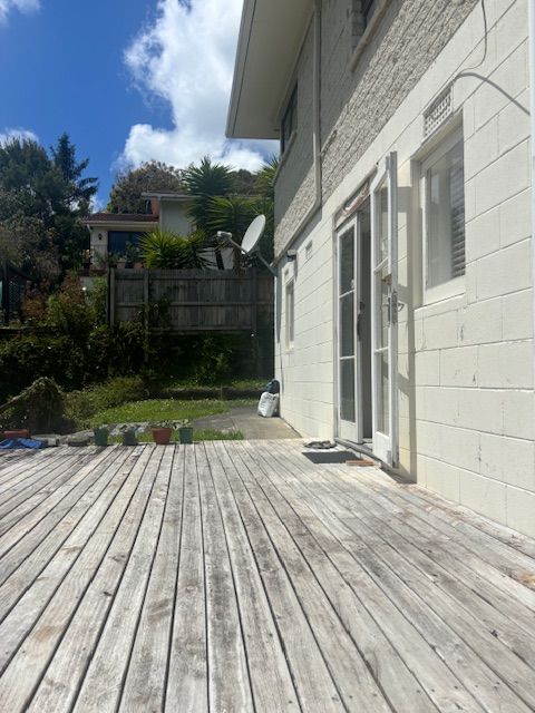 Flat is under the main house and deck area belongs only to the flat.