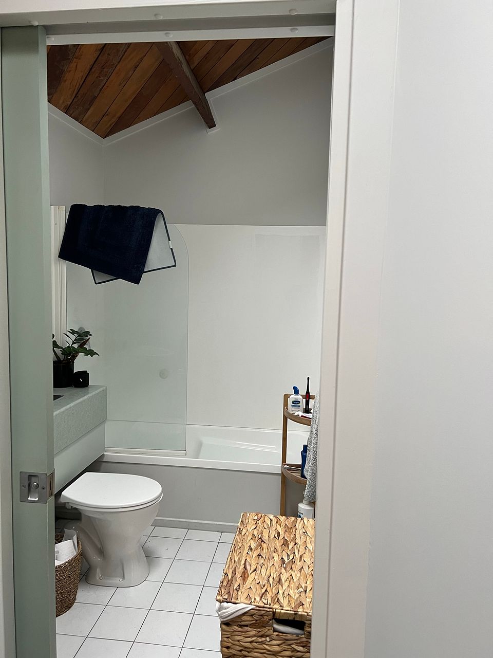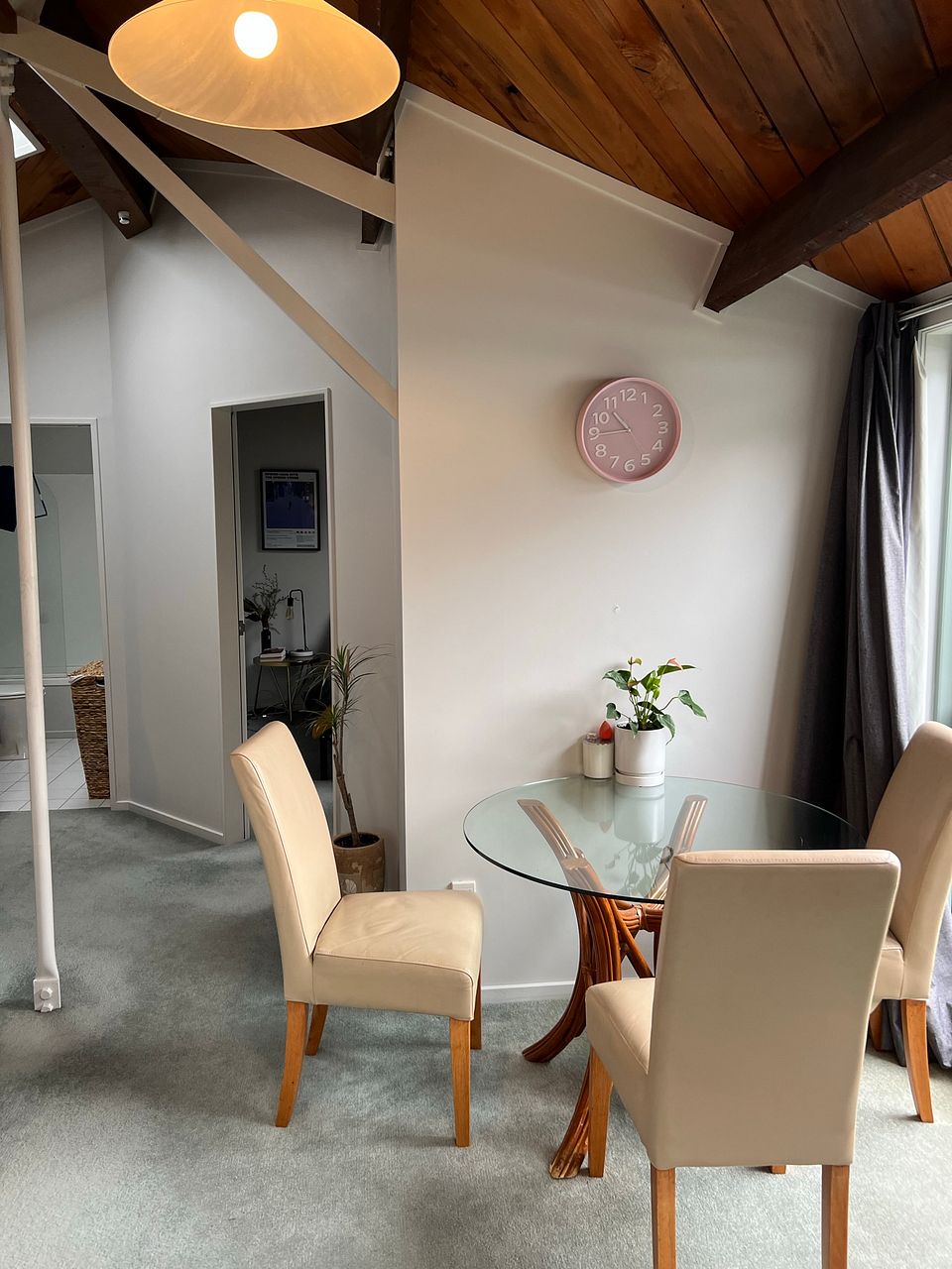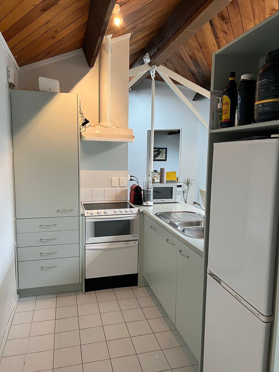 Once inside, enjoy the open plan kitchen/living area with good natural light from skylights that can be opened for secure ventilation, a cosy wooden ceiling, and carpet and tiles in all the right places. A single large bedroom with built-in wardrobe is complemented by a bathroom with a bath as well as a shower.