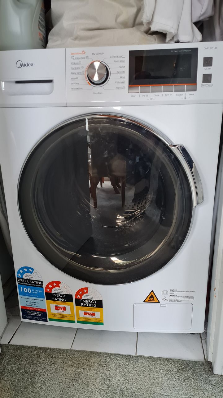 The kitchen is provided with oven, hob, rangehood, fridge/freezer, dishwasher and a food waste disposer in the sink. A combined clothes washer and dryer is also provided. There's even a small, private outdoors area.