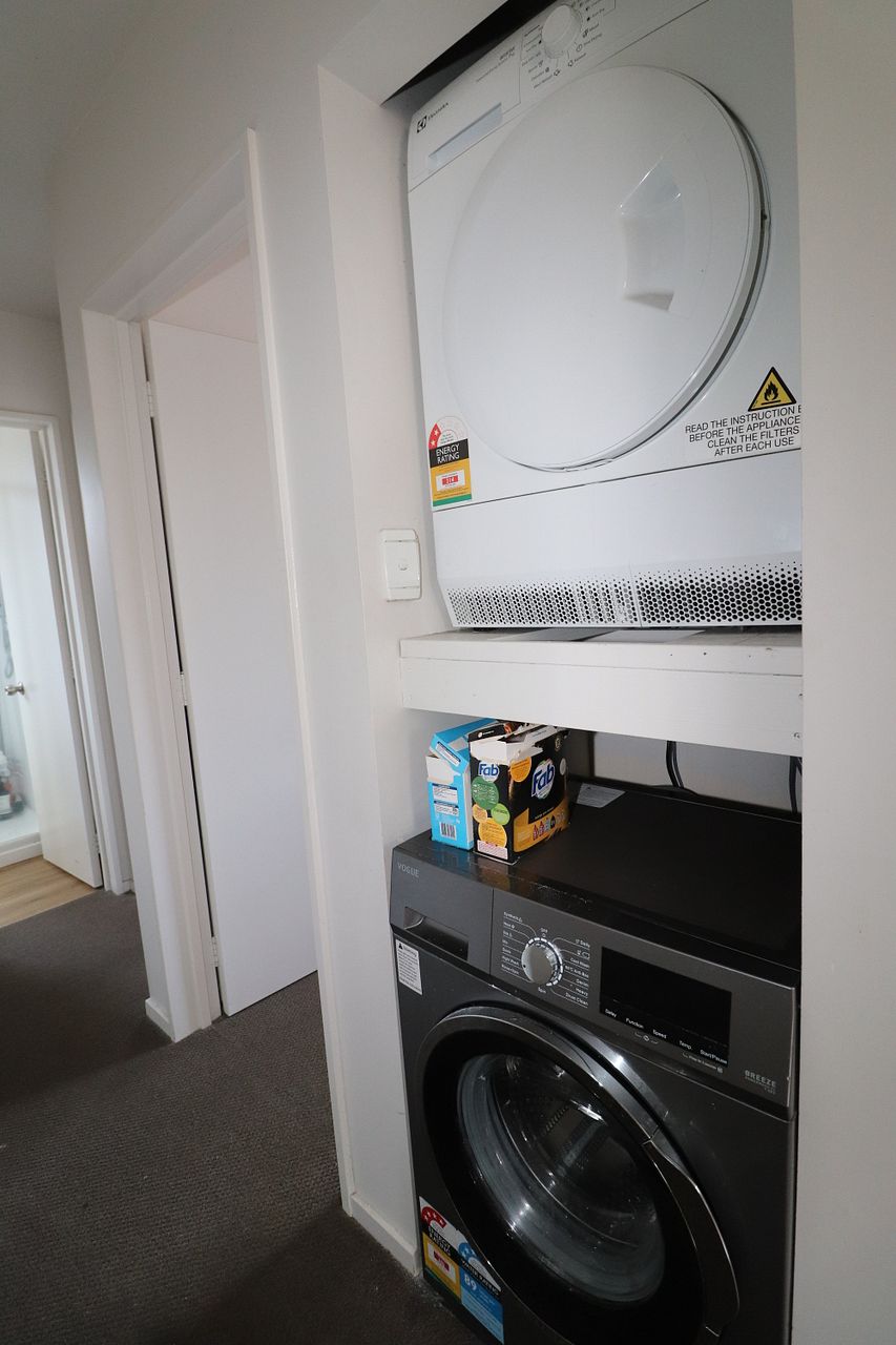 The laundry is in an alcove off the hall.