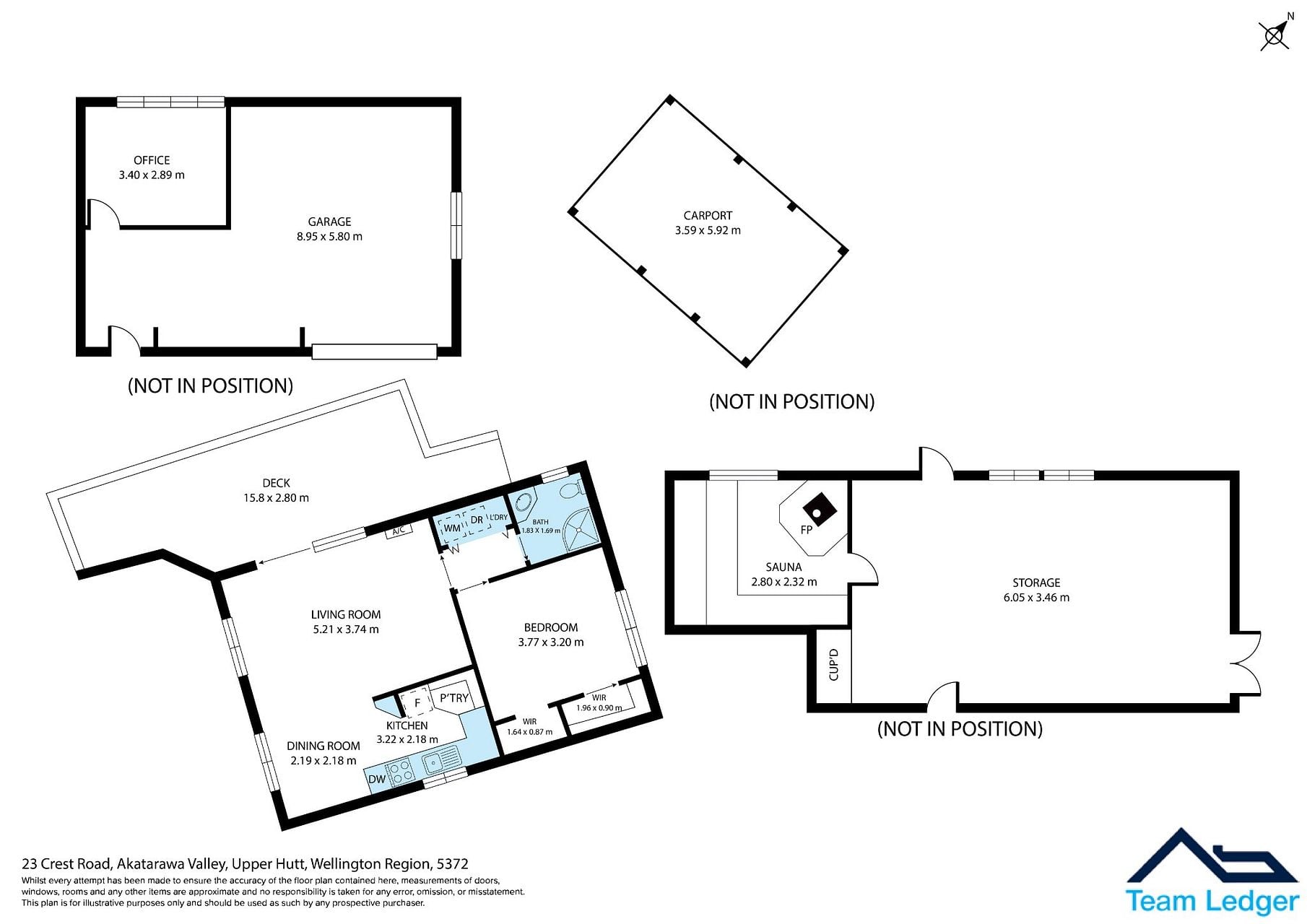 * Home office (or sleepout) attached to garage.