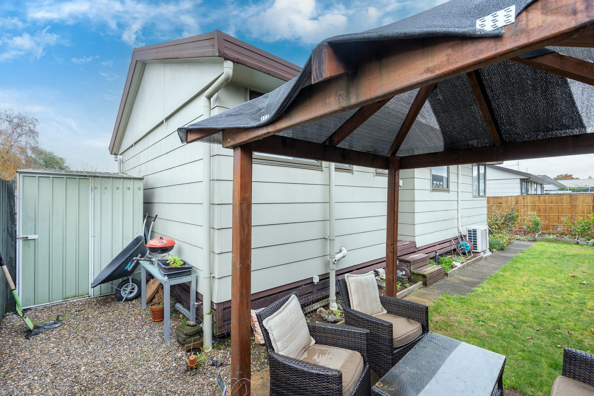 Dedicated off street parking spaces for two vehicles and a garden shed for your outdoor equipment and garden tools storage.