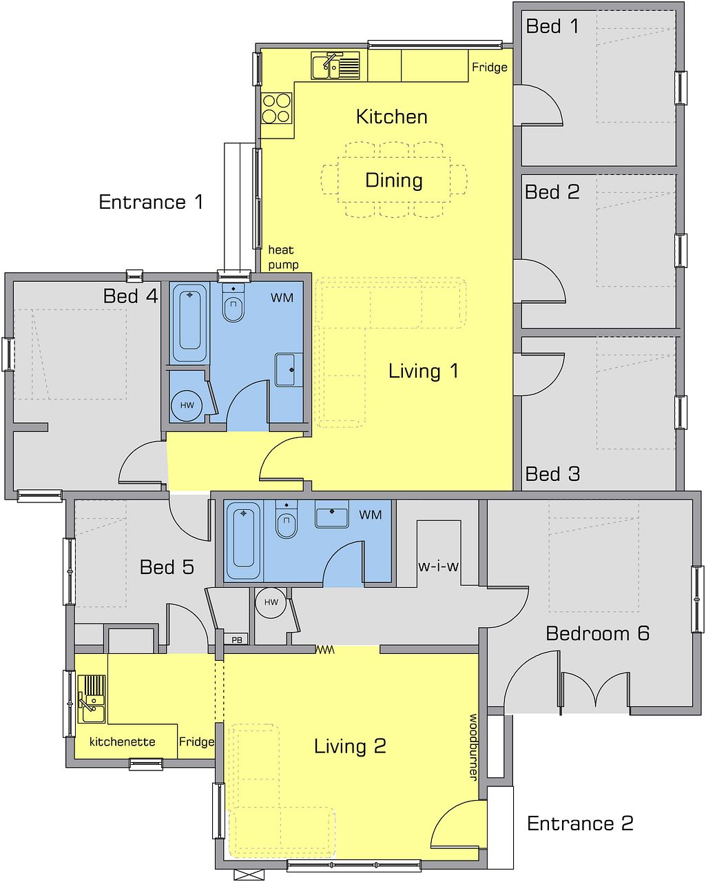 This solid masonry house will keep you cosy in winter while also allowing for privacy in between rooms.