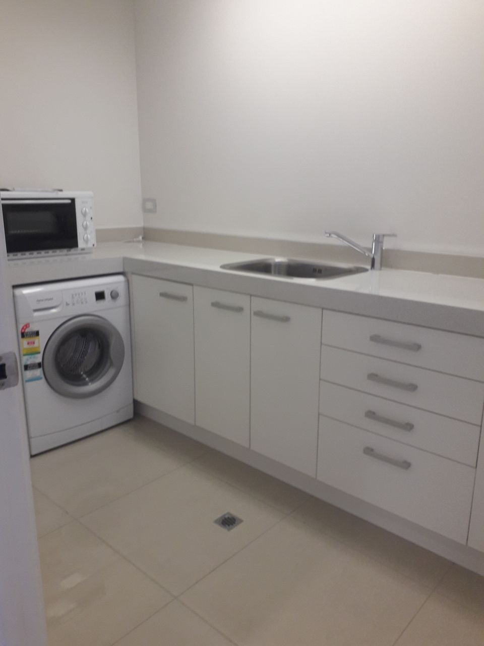 Flooring consists of cozy rhino carpet and tiles in wet areas.
