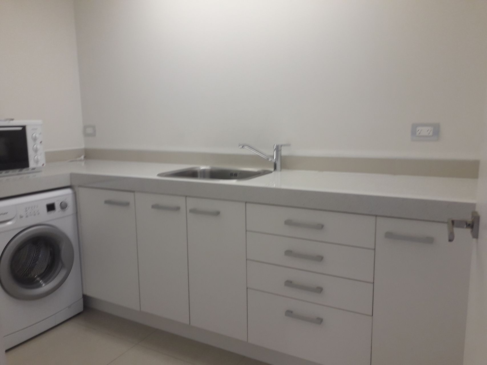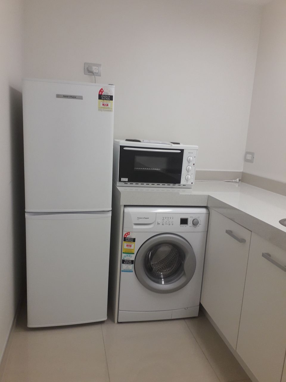 Kitchen with pantry, cook top stove, washing machine and fridge. Plenty of bench space.