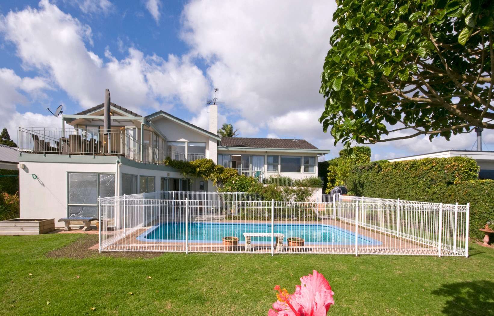The in-ground pool and surrounding lawn is perfect for the family and children to play and relax all year.