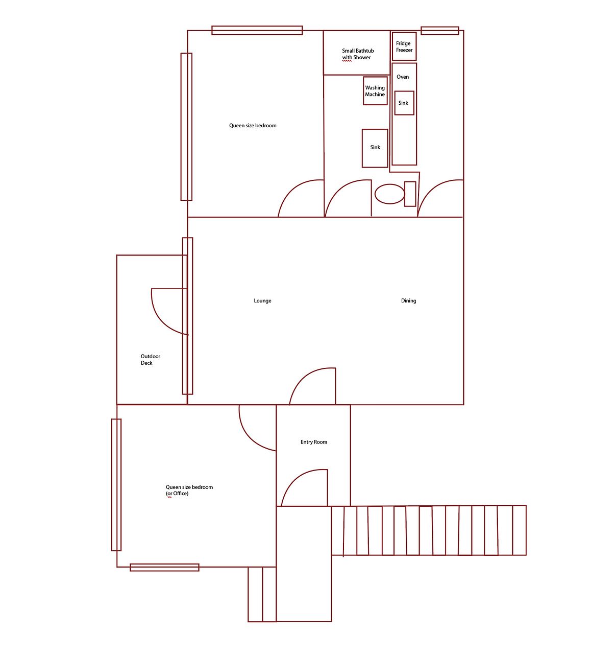 The downstairs unit has its own entrance and includes a kitchen, lounge, bathroom (with small bathtub and overhead shower) and toilet. Parking is off street for one car and additional on-street parking (no garage or carport).