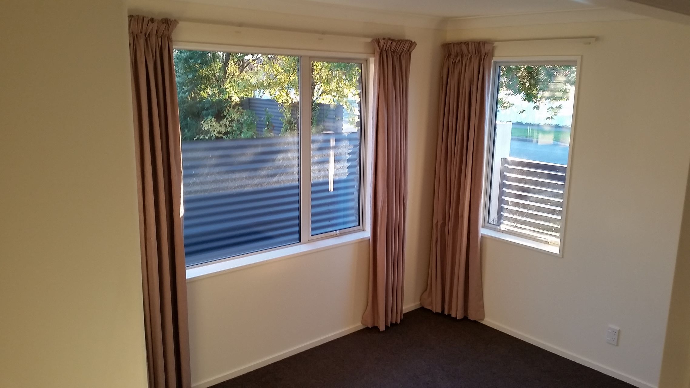 Heat pump, fully fenced, deck facing the sun. Private and close to town.