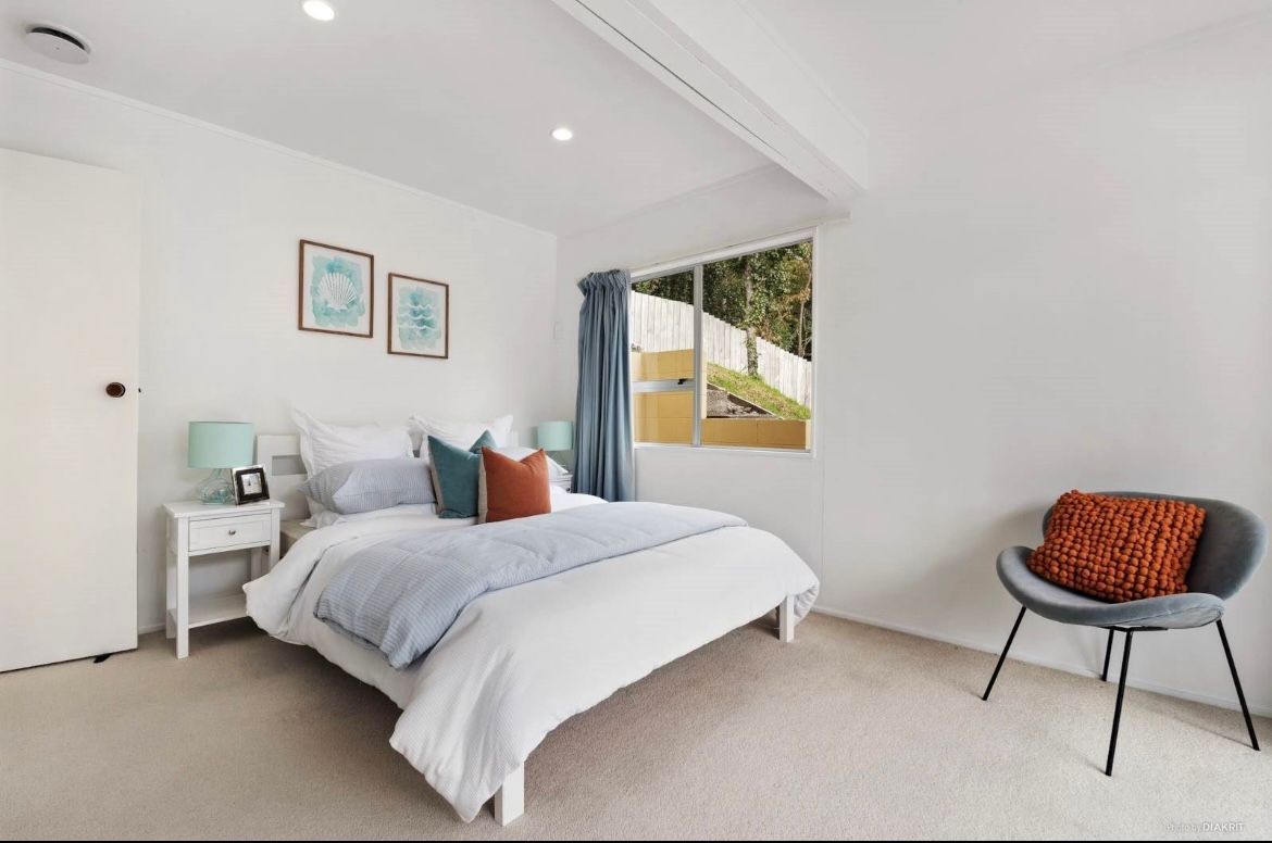 2 well sized spacious bedrooms with relatively new carpets which get plenty of sun. See last picture for new carpet. Both bedrooms have built in wardrobes. There is a kitchen, a dining and living area, plus big bathroom. It’s a 15min walk/3min drive from Browns Bay beach and not too far from Sherwood reserve and bus stops. Shared lower level garden (garden is fenced).
