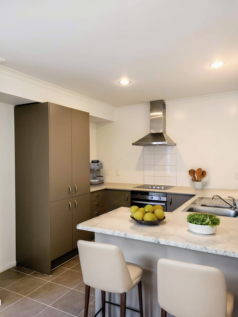 Tiled entrance, kitchen & bathrooms