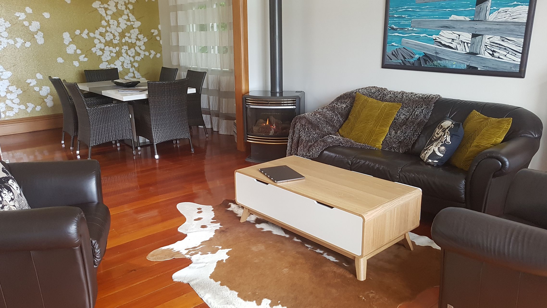 * Open plan modern kitchen, dining and living area leading out to a north facing large deck