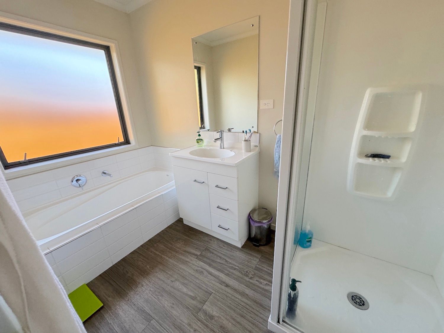Main bathroom has separate bath and shower.