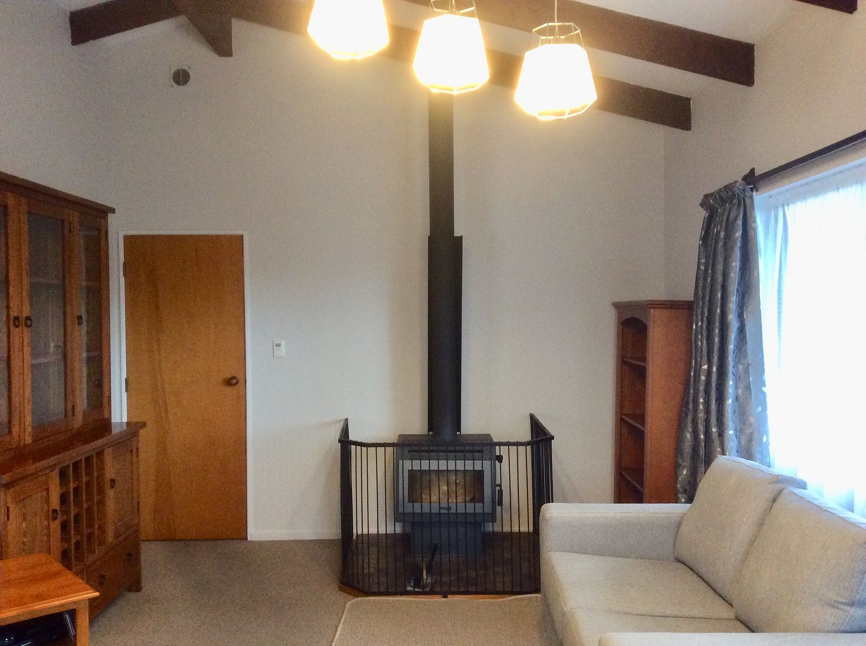 Compliant Logfire with insulation underfloor and in ceiling, plus a Heat transfer system, with an additional heat pump make this a warm comfortable home.