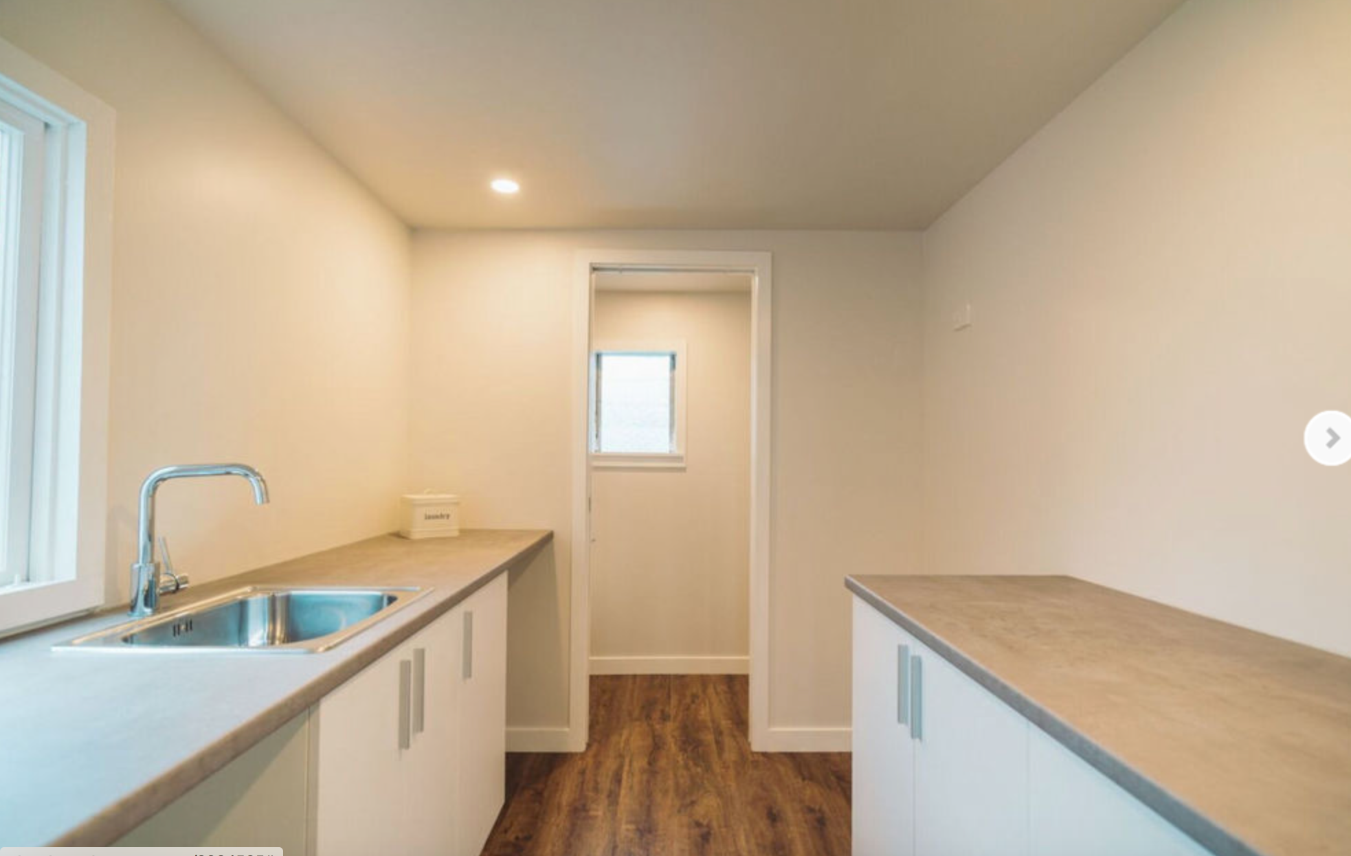 Spacious indoor laundry off the kitchen and a separate second toilet beyond.