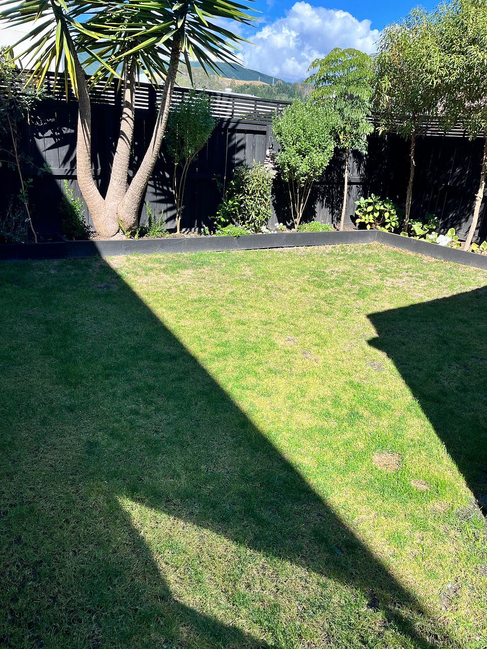 - large fully fenced backyard with beautiful landscaping, large established trees for privacy.