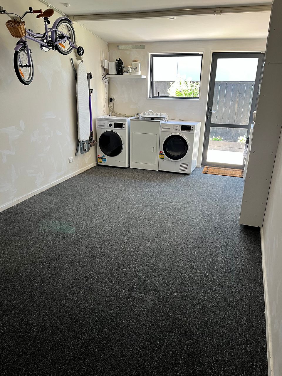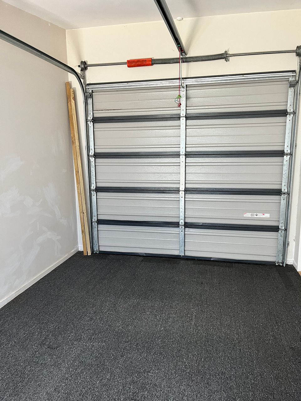 - Single carpeted garage.