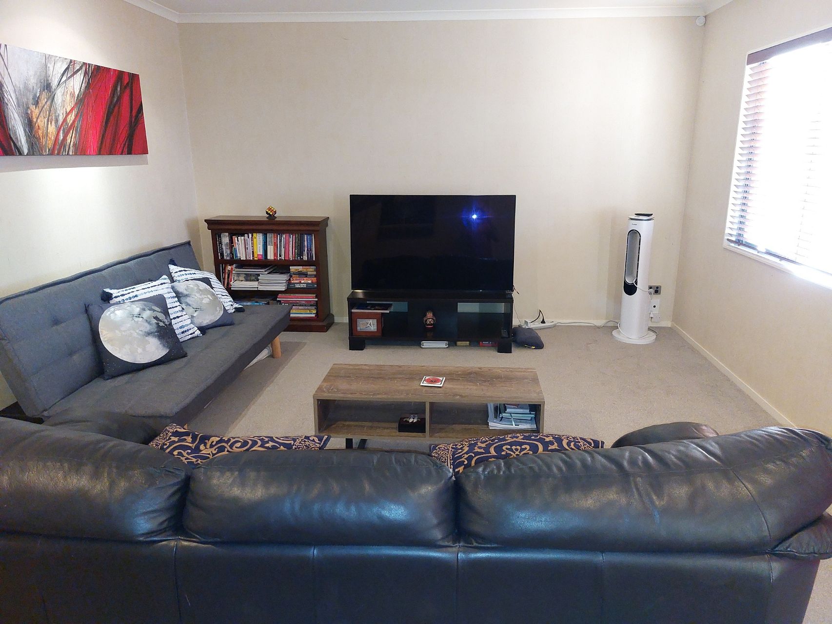 (All large items provided, eg. Queen bed, dressers, bedside units, fridge freezer, microwave, dining table + chairs, couch, separate sofa bed, HD wifi enabled 55inch TV)