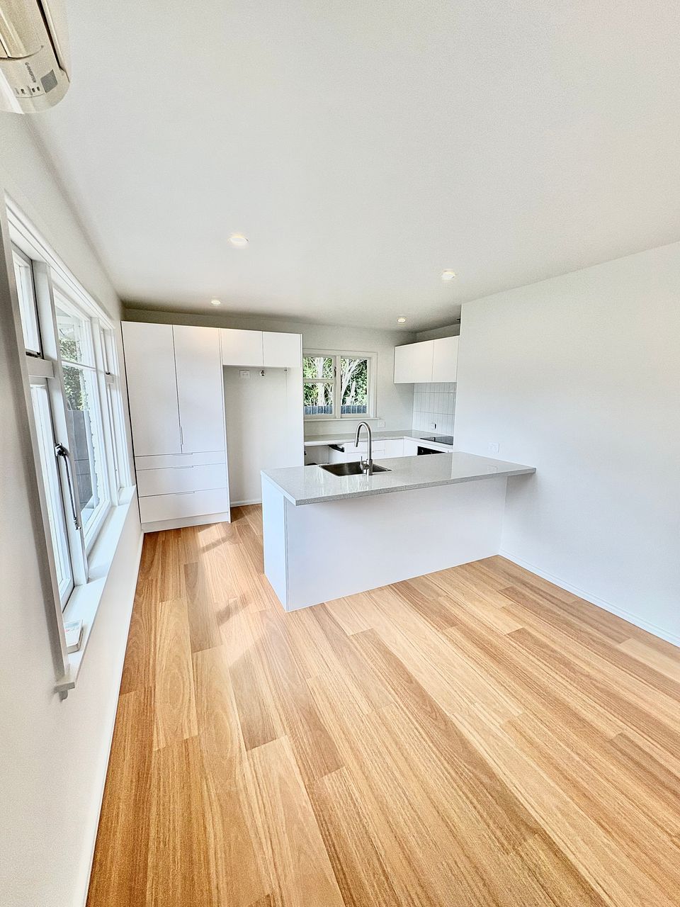 Freshly renovated – brand new kitchen, bathrooms, flooring, paint, and curtains.