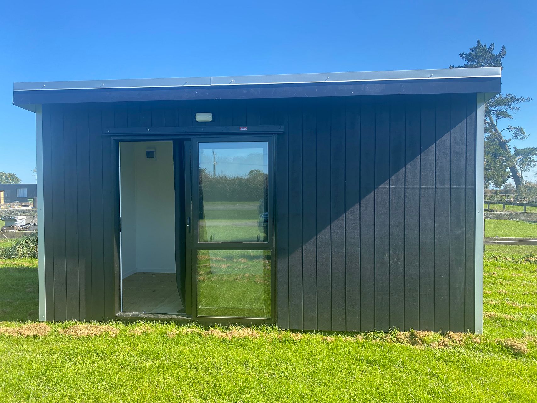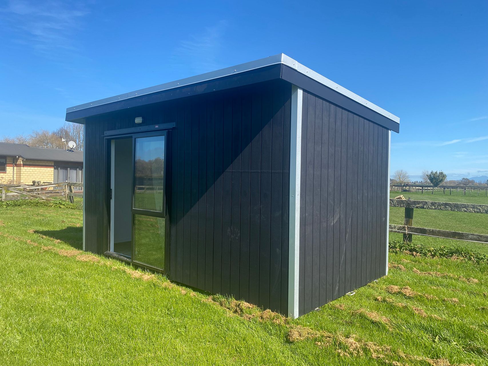 For rent 4.2mx2.8m $130 weekly hire fully insulated, double glazed, Carpet flooring, painted plywood walls,2xDouble plugs , Outdoor light, curtains, caravan lead Delivered on trailer sits on rails at ground level.