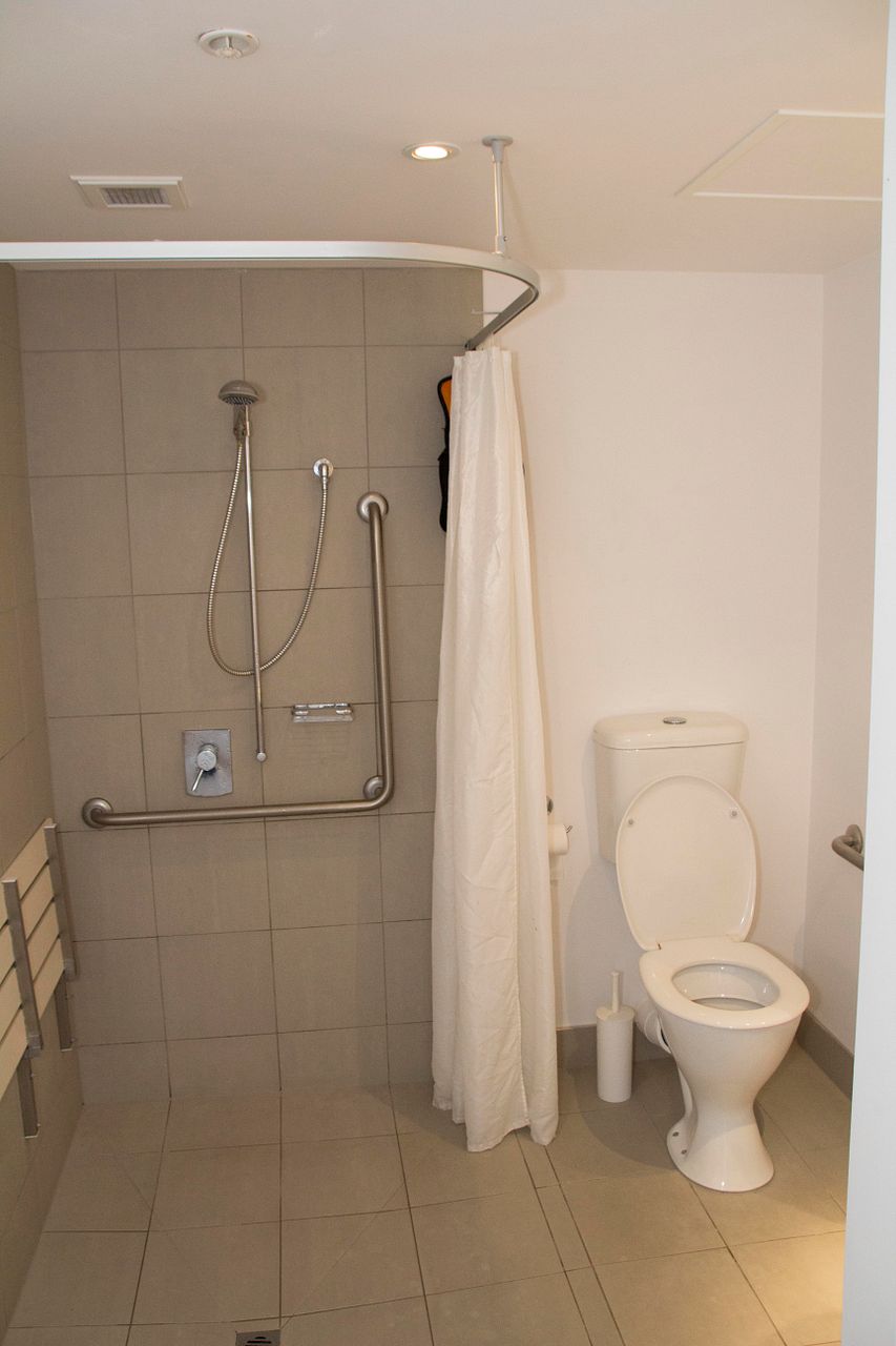 This fourth floor apartment features a double bedroom with built-in wardrobes and fully tiled bathroom with heated towel rail, shower and an all-in-one washer-dryer combination.