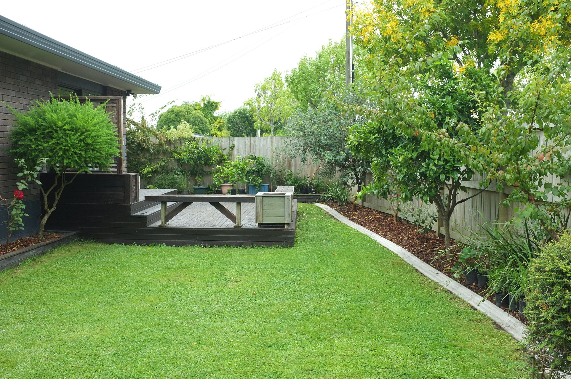 Two bedrooms, new bathroom with shower and bath. Toilet is separate. Open plan lounge dining that opens on to a deck. Oven was also replaced earlier this year. Lots of fruit trees and some mowing.