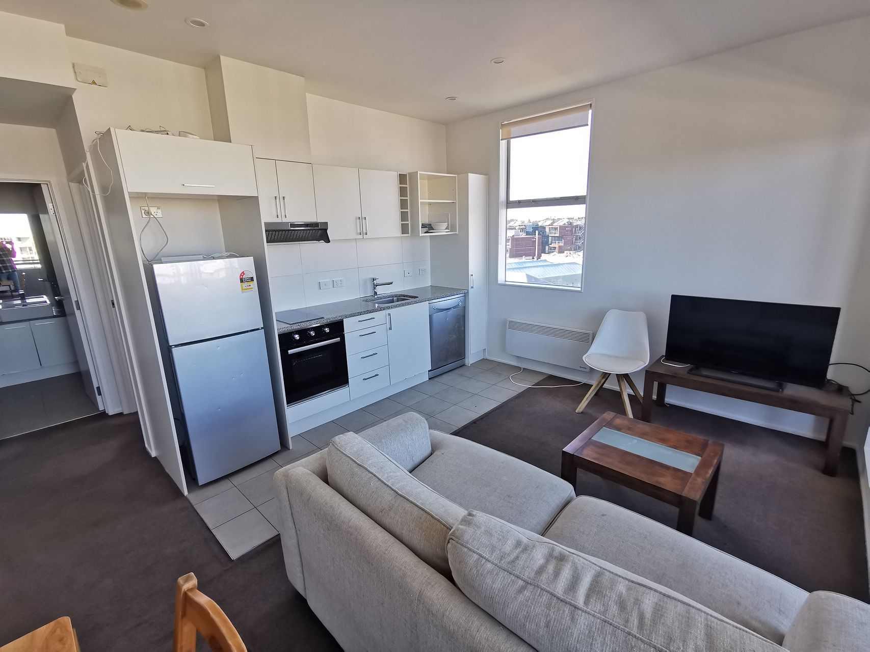 This eighth floor apartment features two double bedrooms with built-in wardrobes and fully tiled bathroom with heated towel rail an all-in-one washer-dryer combination in the hallway. Secure entry to the apartment complex with CTV cameras, an intercom for visitor access and comes with a storage locker in the basement.