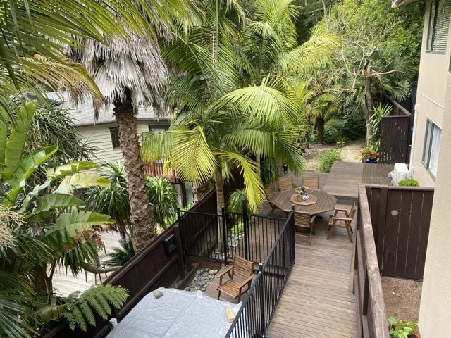 - Spacious Deck downstairs with an outdoor table and 6 chairs