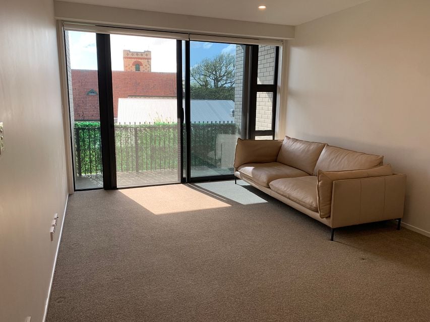 This top-level corner apartment offers a full-sized kitchen, a double bedroom, a spacious bathroom, a built-in laundry, customised storage and a cosy lounge that opens to a private balcony.