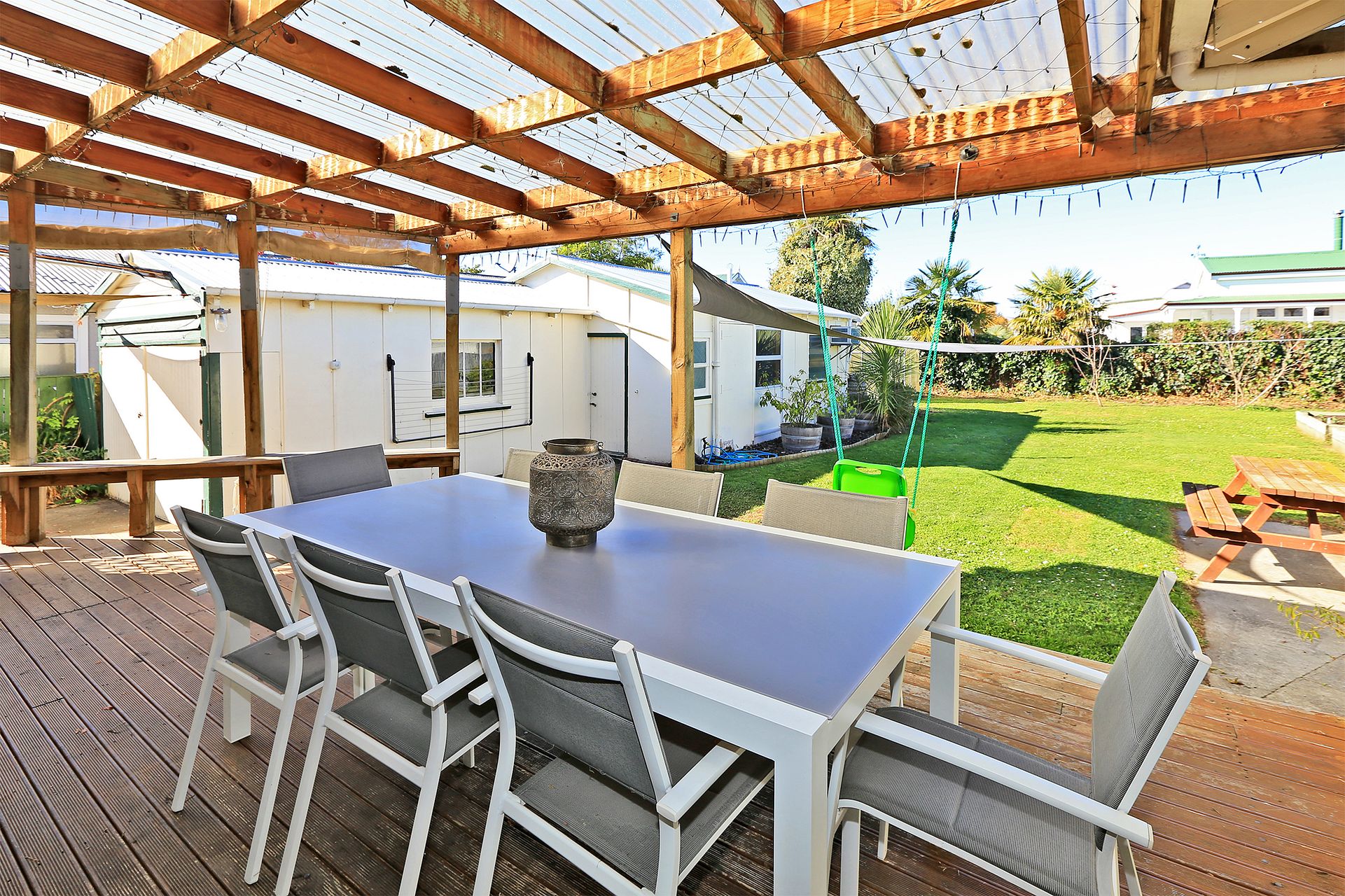 Fully fenced back yard and lawns.