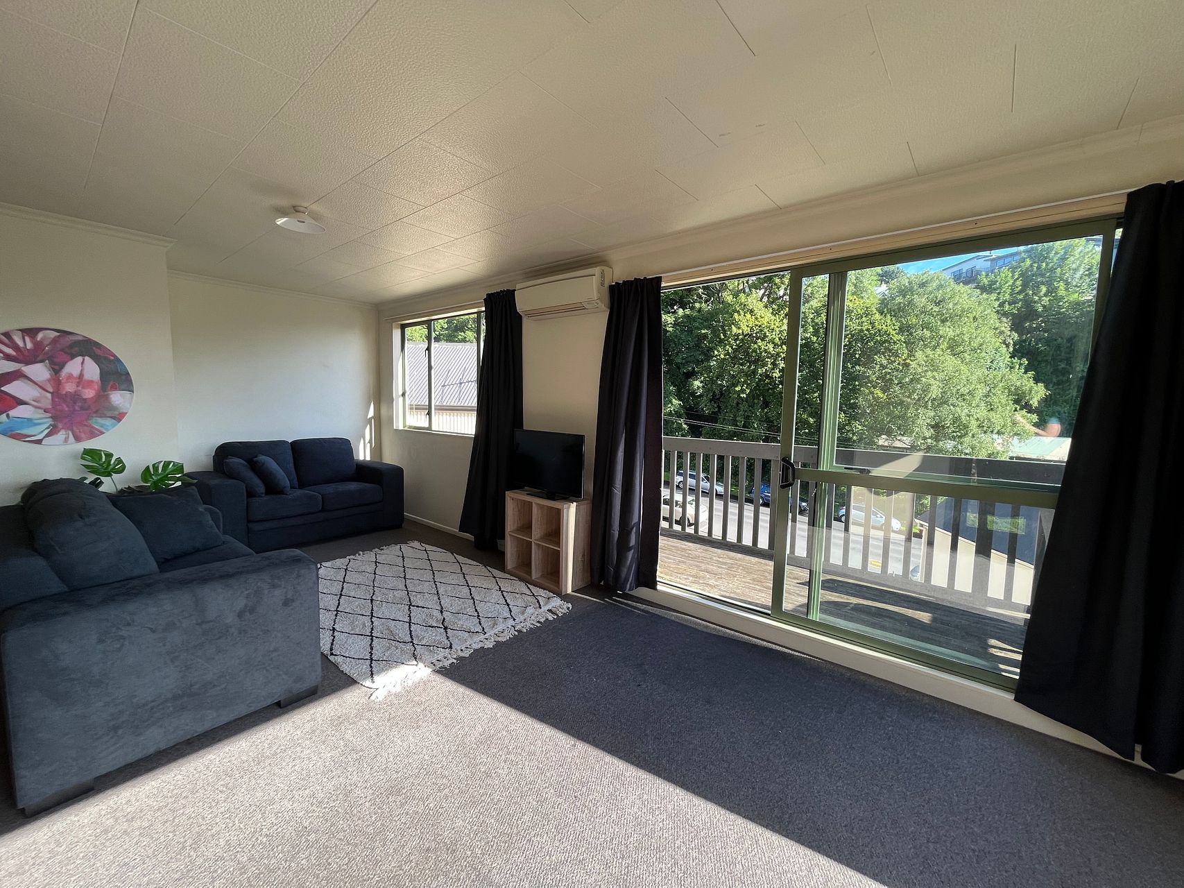 Sunny and warm with 2 heatpumps. All bedrooms are double glazed.
