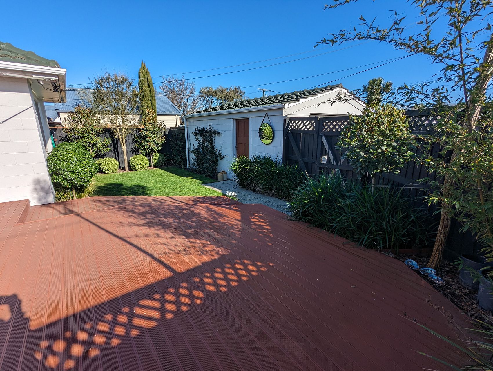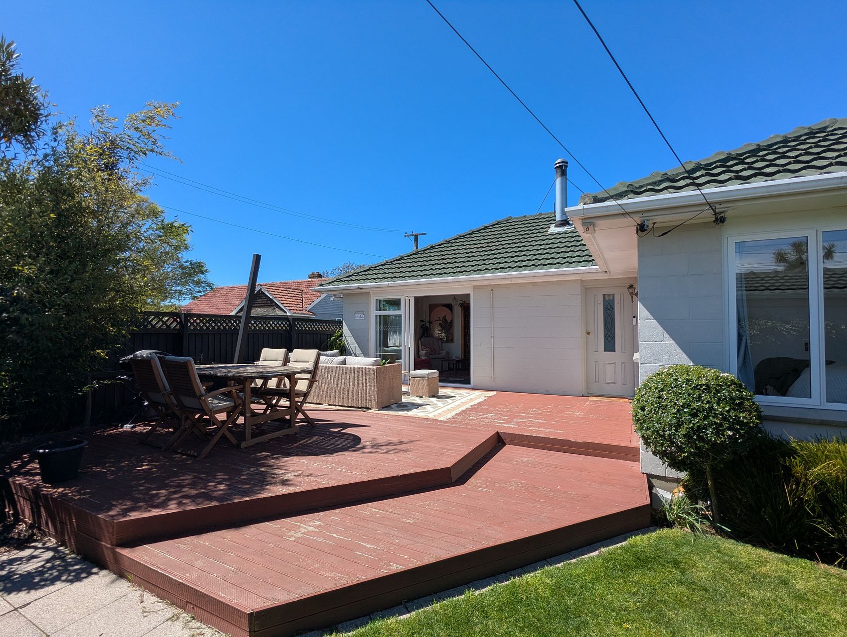Outside there is an easy maintenance garden including a variety of fruit trees (Apples, Pears, Feijoa, Nectarine, and lemons). The deck is situated to soak up the midday and evening sun and has a sunshade for summer heat. There is a single garage to either store your car or set up your tools.