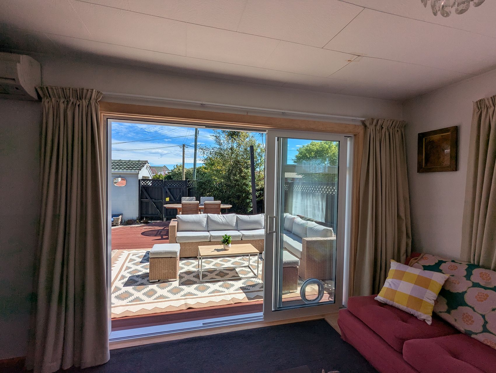 This charming 2 bedroom, 1 bathroom house in Russley, Christchurch is available for rent from November 28th. The house has flow between indoor to outdoor living with a double glazed three door stacker slider. It has a beautiful landscaped garden and large front deck perfect for relaxing or entertaining guests. There are 2 (possibly 3) off-street car parks available plus a single garage and is fully-fenced for privacy and security. Pets are negotiable as the property is ideal for either cats or a small dog with a pet door already built into the slider.