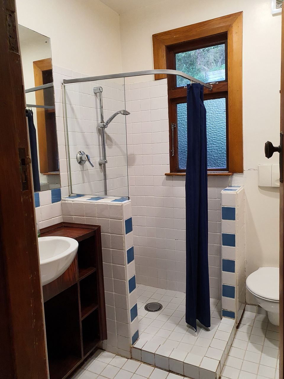 Larger bedroom has a built-in wardrobe, second smaller bedroom opens to a private deck which sees good morning and afternoon sun. From the deck there are a few steps up to a further private patio with seating that overlooks the park and western hills. Bathroom with shower (note -base of shower has recently been re-tiled since this pic was taken.)