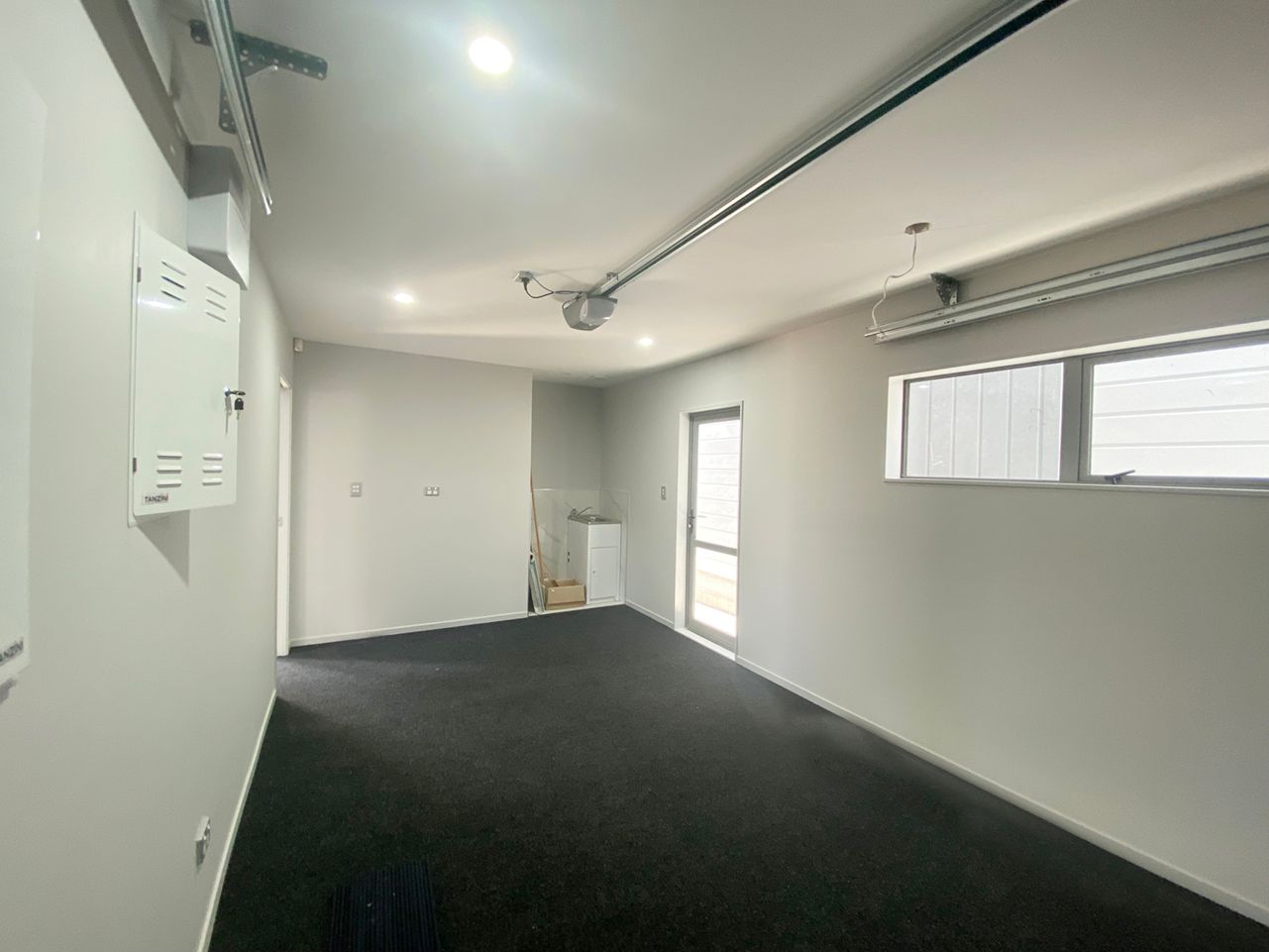 The single garage is carpeted.