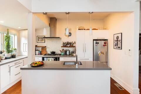 Short term rental of four - five months available for two storey spacious, fully-furnished villa in quiet Waterview, with views of the water from several rooms. Two double rooms, two single rooms and an office. Master bedroom has an ensuite and walk in wardrobe. Off street parking for 1 car and more parking available on the street. Outdoor dining table, and deck with views of water looking west where the sun sets behind the Waitakeres.