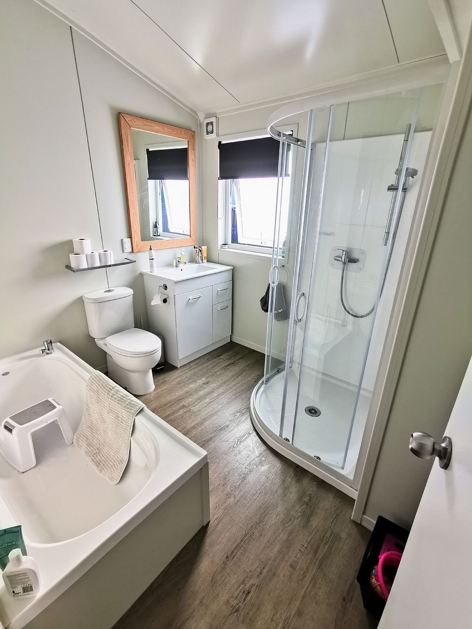 Main bathroom has sep bath & shower, sep guest toilet & ensuite shower & toilet to master bedroom.