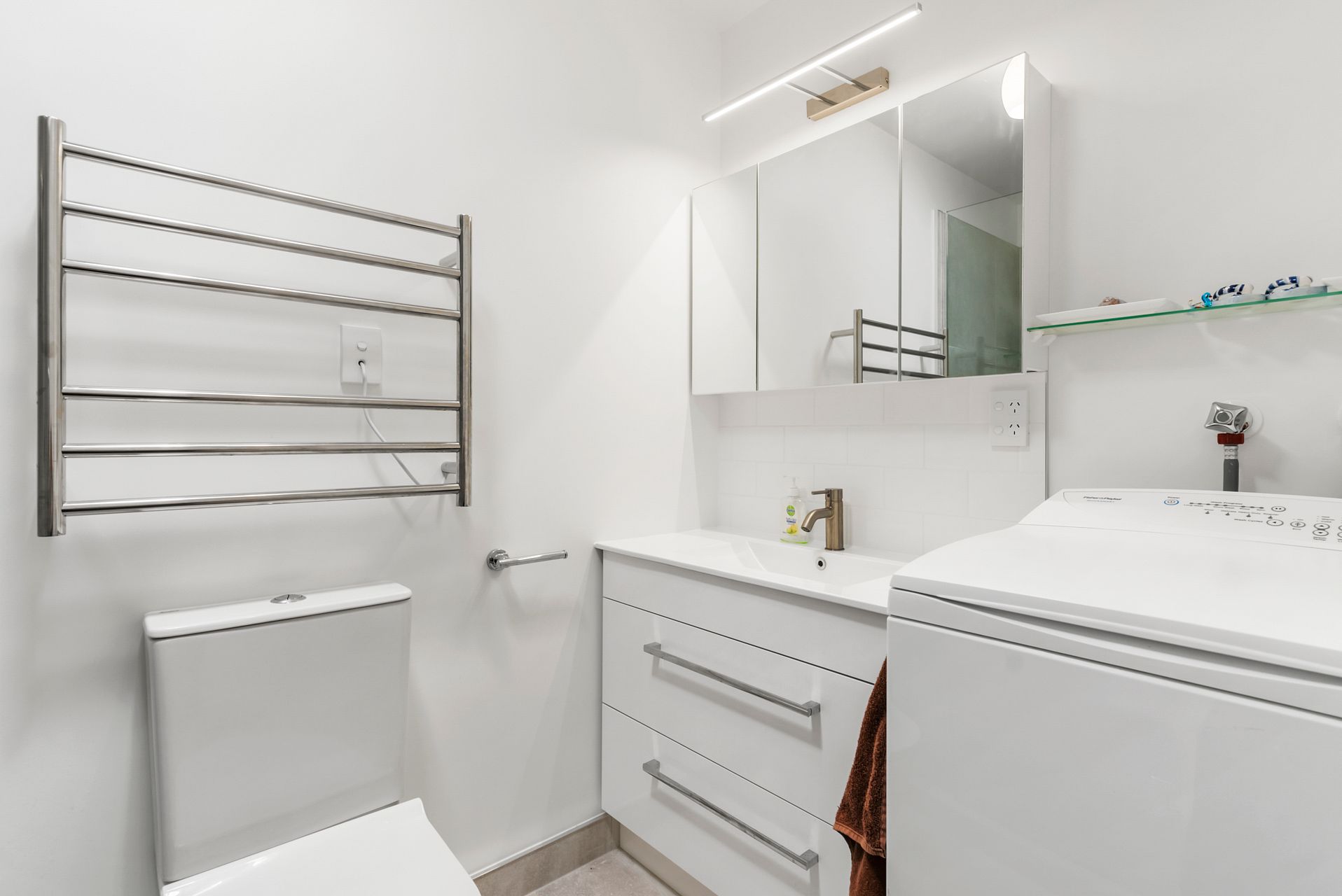 Double-glazed windows ensure peaceful living, even though the apartment is only a stone’s throw, and just around the corner from, the Highbury shops, with its supermarket and numerous buzzy restaurants and bars. The bus stop is at the front door and buses into the city are fast and frequent. There are also bus services to Albany, Takapuna, and to the ferry to downtown Auckland.